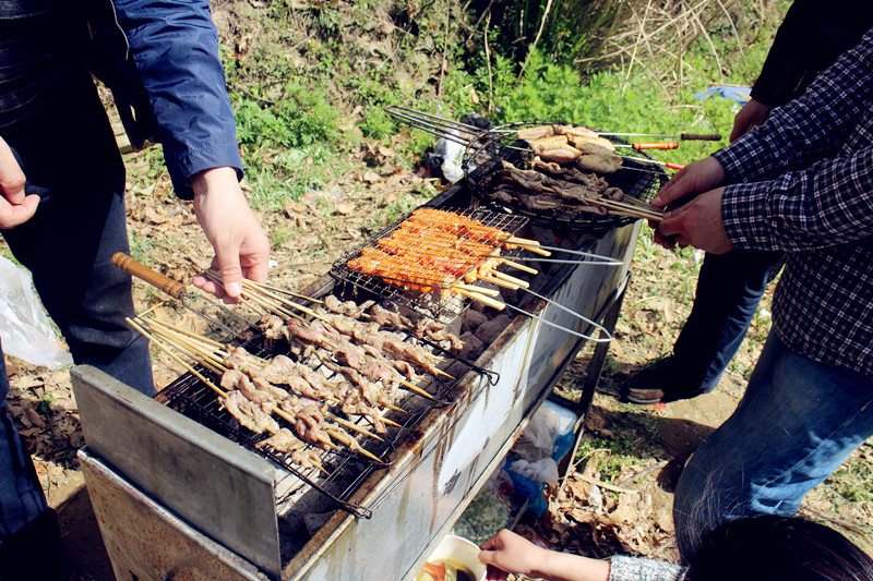 4月的天氣春意盎然,風(fēng)景迷人,。湖畔旁微波蕩漾,水波中映射出藍的天,白的云,綠的樹(shù)。大家興致高昂在不到2個(gè)小時(shí)的時(shí)間,各自分工搭鍋灶、切菜、串肉,燒烤。提前完成了我們的中餐任務(wù)。中餐過(guò)后大家爬山,摘竹筍,不亦樂(lè )乎。