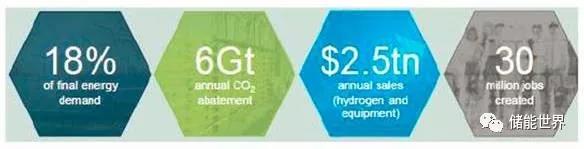 在2050年之前,通過(guò)更大規模的普及,氫能源將占整個(gè)能源消耗量約20%,全年的二氧化碳排放量能夠較現在減少約60億噸,能夠承擔將全球變暖控制在2℃以?xún)人瓒趸紲p排量中的約20%。