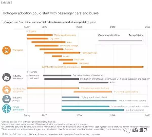 表3:在不同行業(yè)中氫能源的采用將是階段性的