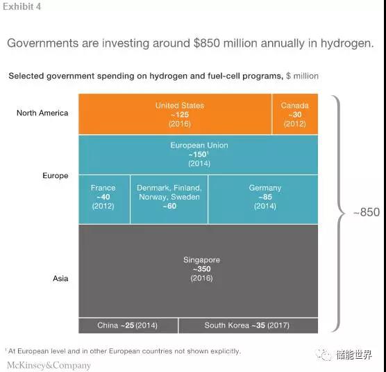 由加州、德國、日本和韓國牽頭的許多地區都正在加快發(fā)展氫能源和燃料電池技術(shù),每年花費超過(guò)8.5億美元。其它國家也在擴大自己的生產(chǎn)能力和拓展充電基礎設施網(wǎng)絡(luò )。